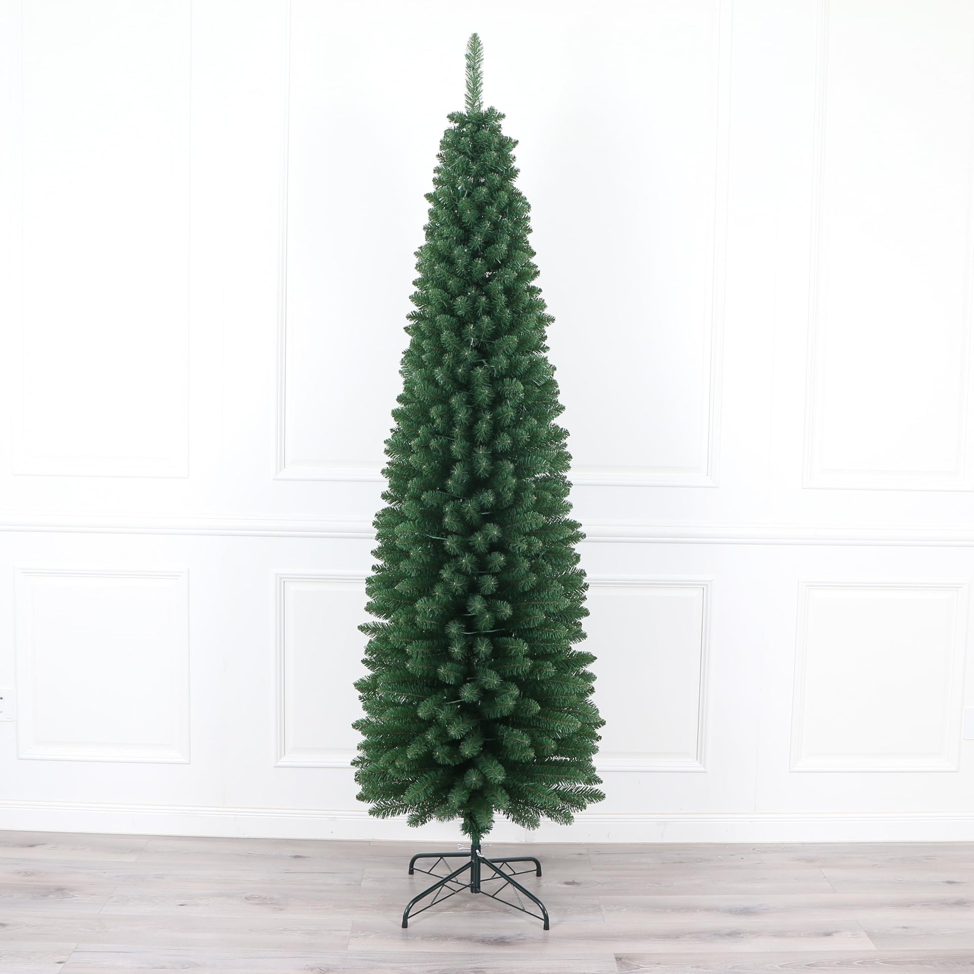 Classic Green Pine Pencil Christmas Tree Pre-lit with Warm White LED Lights