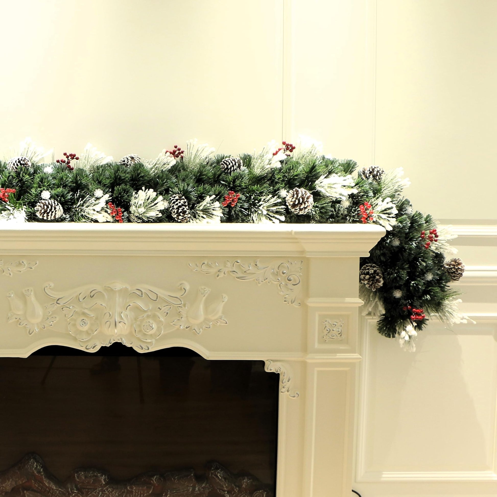 Frosted White Pine Fiber Optic Christmas Wreath