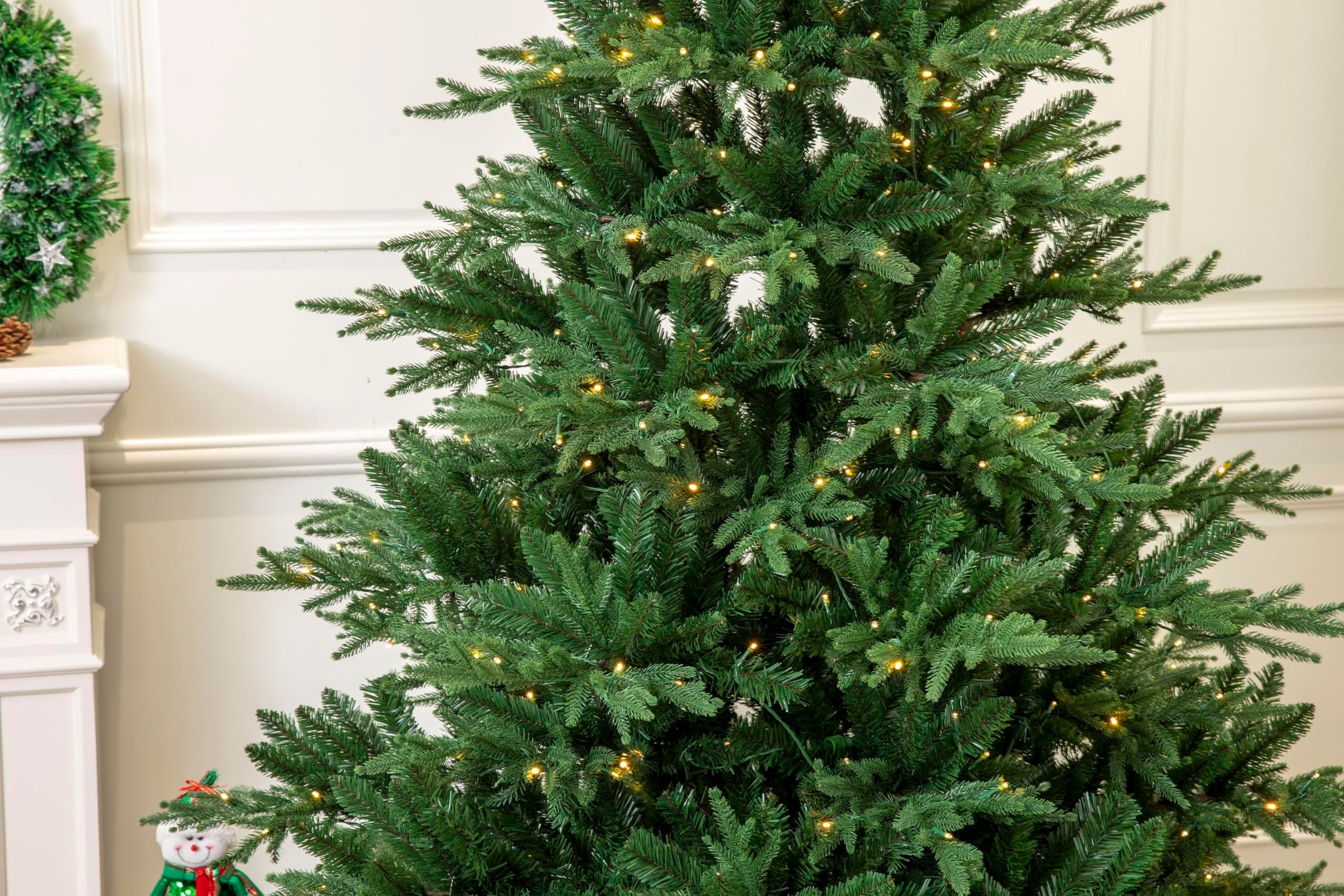 When people talk about traditional Christmas tree, they think of the Nordmann Fir Christmas tree. That is right, Nordmann Fir has a classic Christmas tree shape with broad, pyramidal habit, it marked by horizontal branches filled with soft needles, durable for hanging ornaments yet aren’t prickly to touch. Inspired by the nature, our Fine Shape Nordmann Fir is a combination of 2 types of leaves, the dark PVC fitted on the inside and the authentic feeling Nordmann fir tips towards the outside, creating a beautiful 2 tone effect that will make it great Christmas tree to showcase your ornaments.