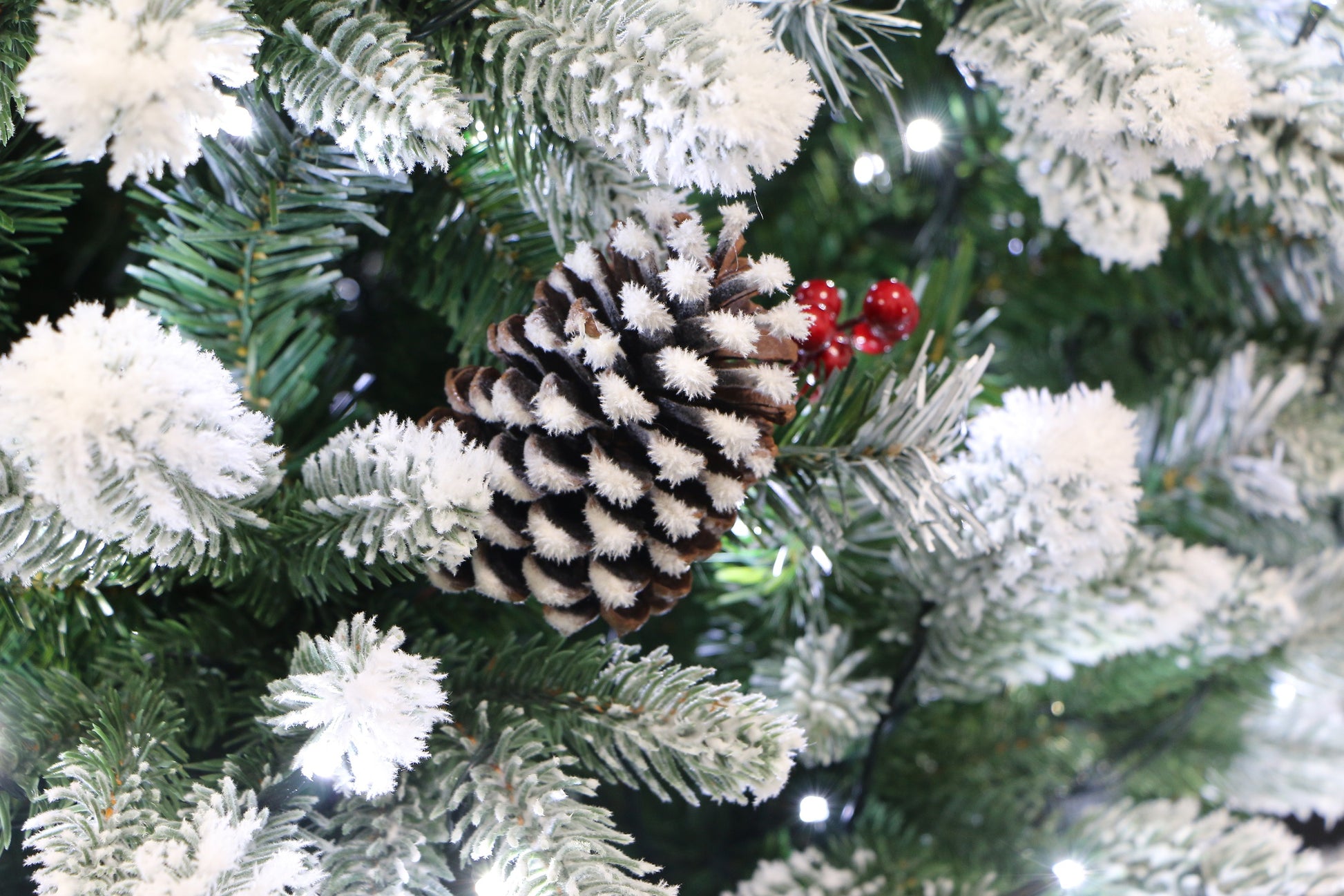 Inspired by the beauty of nature, our Frosted Winter Spruce is a made of realistic PE tips, which is carefully molded, looks real, feels real, classic evergreen PVC tips fitted underneath for thickness, creating a perfect green background.