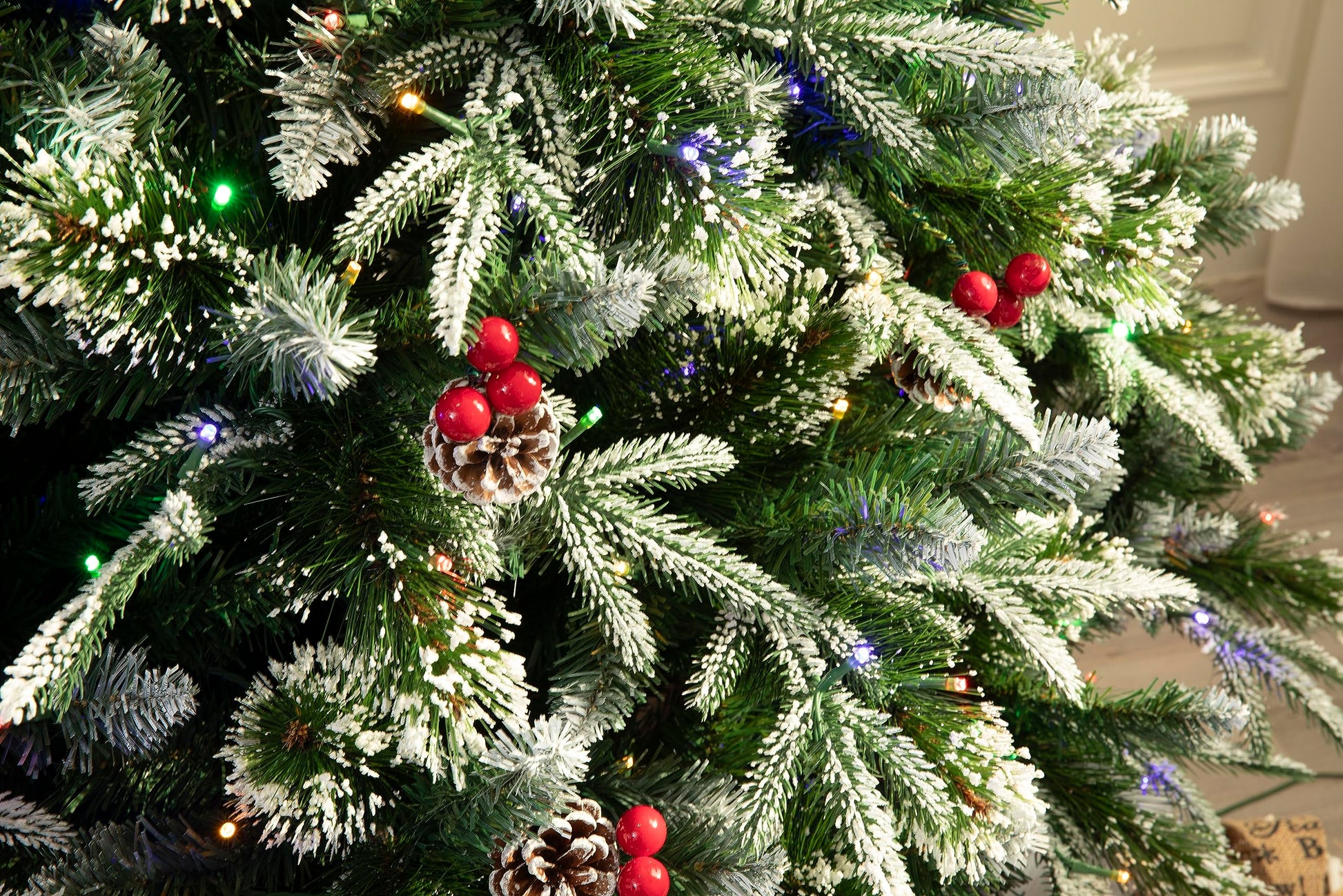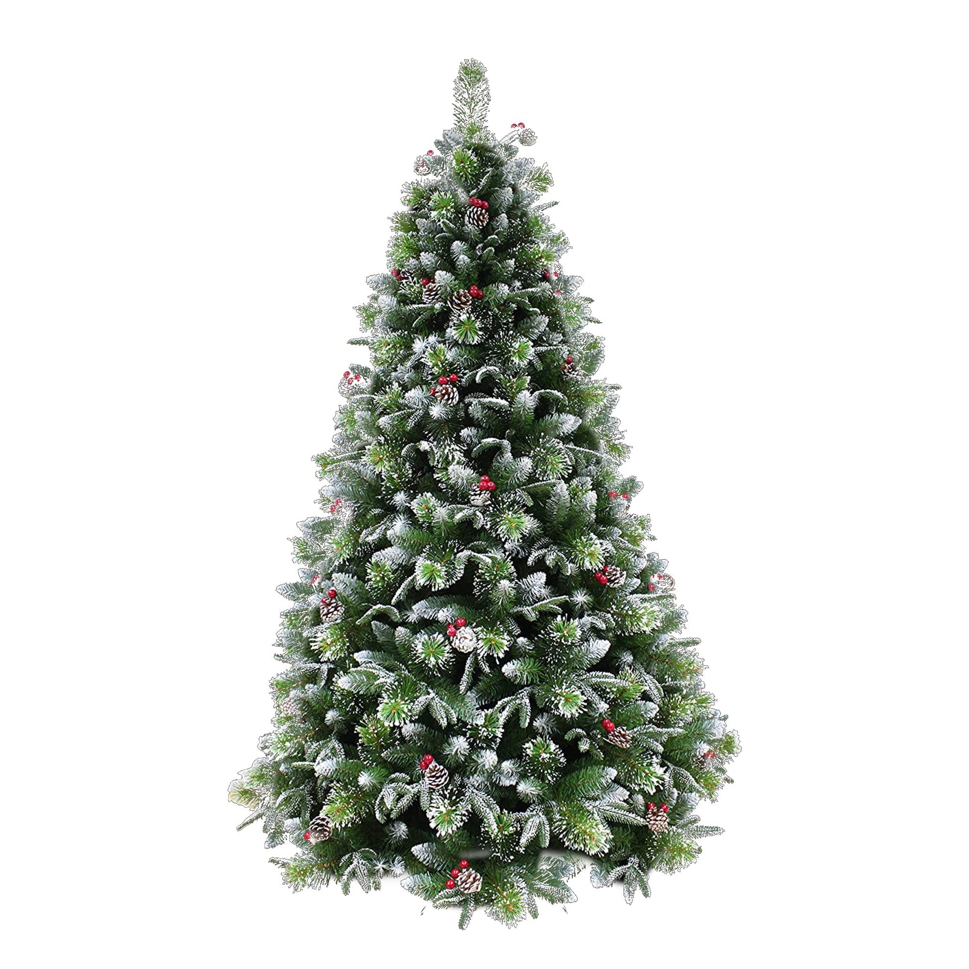 - Eco-friendly material. Highly realistic Real-Feel PE needle towards outside for the realism, classic PVC towards inside for the thickness, mix texture branch tips, supper full and lush. Lightly flocked with non-toxic artificial snow